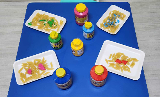Contato direto com a arte. Observação de obras, impressões, desenhos, muita produção e criatividade. Tintas, pincéis, texturas, modelagem em variadas técnicas e muito mais marcam este espaço.