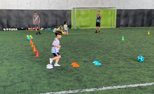 A Escola Infantil Tindolelê oferece esta prática esportiva firmando parceria com a Escola de Futebol do Giba, em local vizinho à escola.